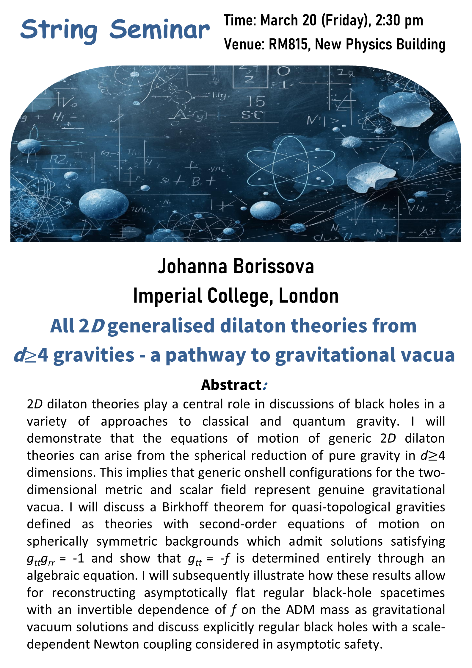 • Prof. Daniel Baumann delivered the first annual Chin Yu Lecture on “The Past, Present and Future of Cosmology “ on March 2, 2021. Poster. Video